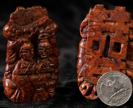 Carved Peking Glass Bead Longevity 25mm BGC205 - 4 Colors