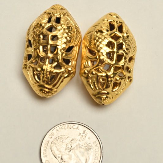 Gold Plated Double Fish Oval Bead BM73G 1-3/8"