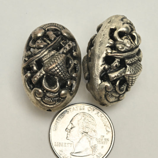 Silver Plated Oval Bead with Tibetan Symbols BM75, BM76 1-3/8"