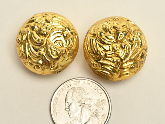 Gold Plated Pancake Bead with Peacock BM81G 1"