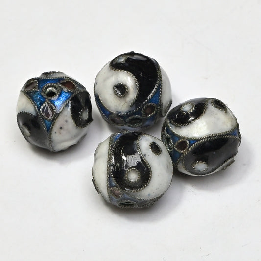 Bead Metal Enamel Silver Plated Round Yin Yang BM108