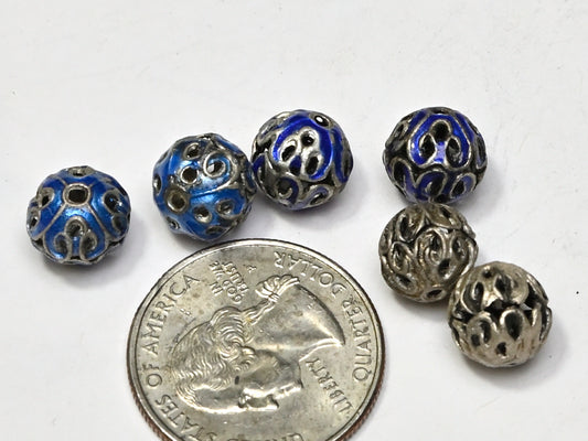Bead Enamel Silver Plated Metal Open Lace 10mm BM58
