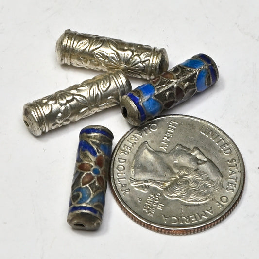 Bead Enamel Tube Gold or Silver Plated, Floral Motifs with Coin Design Cut Out 10x18mm