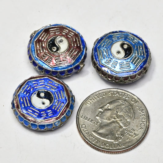 Bead Enamel Silver Plated Metal Disc Yin Yang Bagua