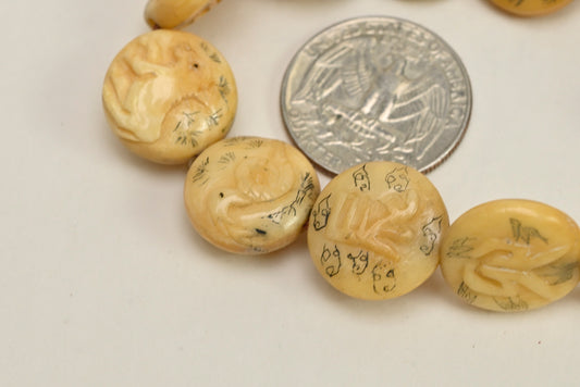 Chinese Zodiac Carved Bone Disc Beads Rosary BBE219Z