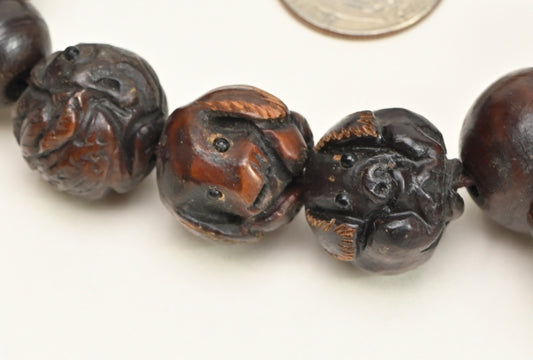 Chinese Zodiac Carved Dark Wood Round Beads Rosary BWD25