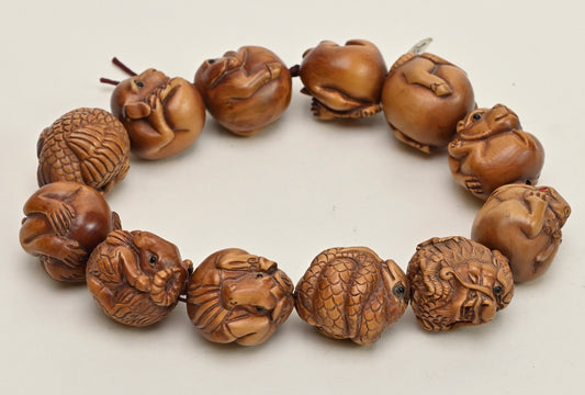 Chinese Zodiac Carved Box Wood Round Beads Set BWH01Z