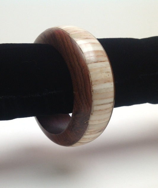 Wood and Ivory Colored Bone Bangle
