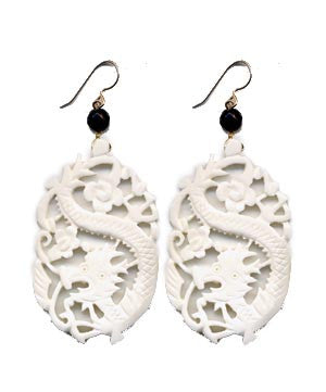 Hand-carved Moghal Style Bone & Aventurine Earrings