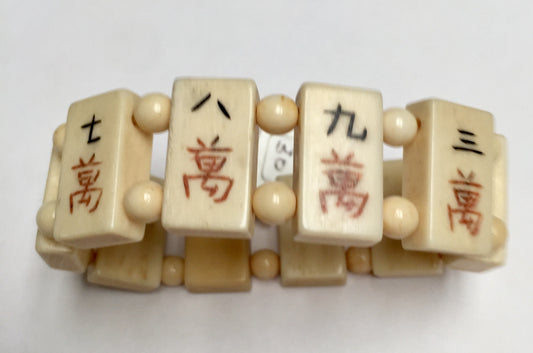 Mah Jong Bone Bracelet with Bone or Glass Beads
