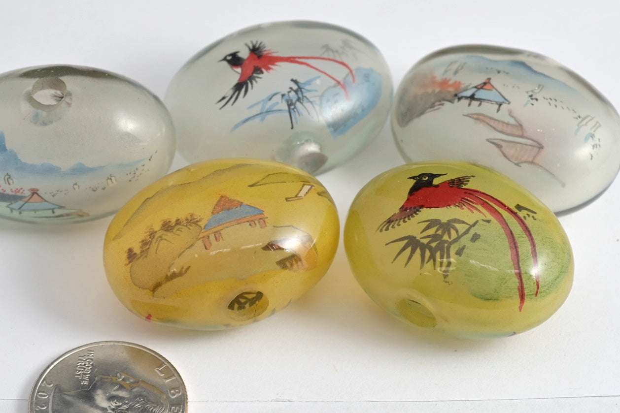 Hand-blown reverse painted glass beads in Amber or Clear background,