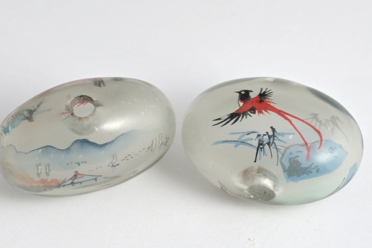Reverse Painted Glass Pancake Beads Pheasant - 2 Colors